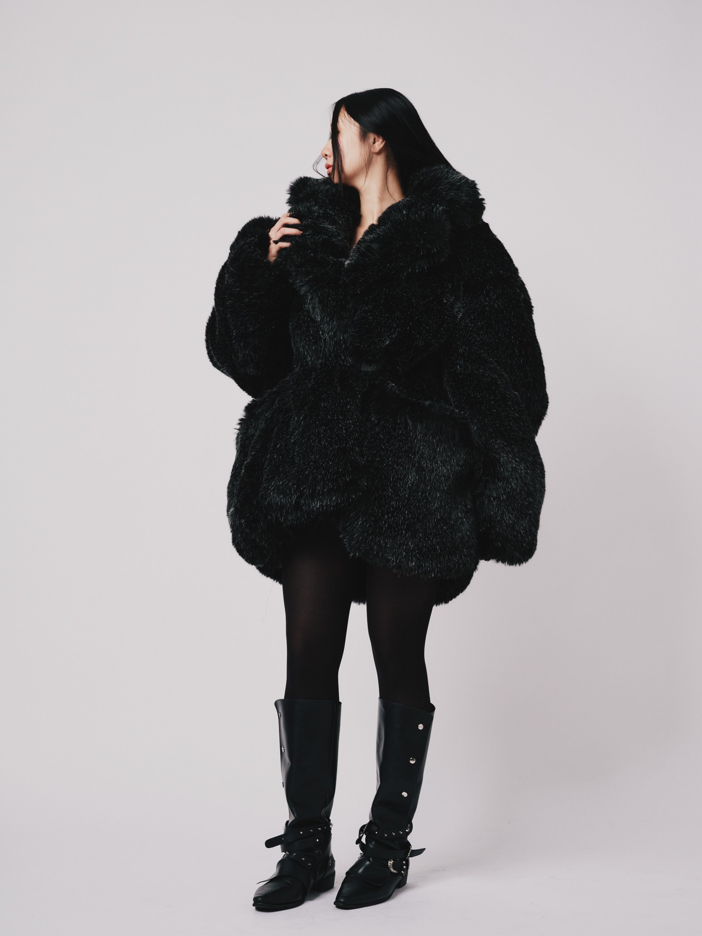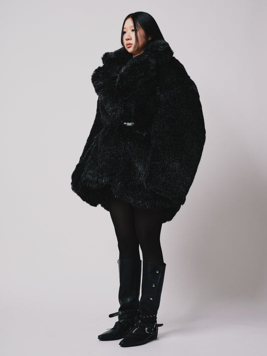 Hoffman Coat- Faux fur (Below hip Cut) Black/Silver |ONE-OFF