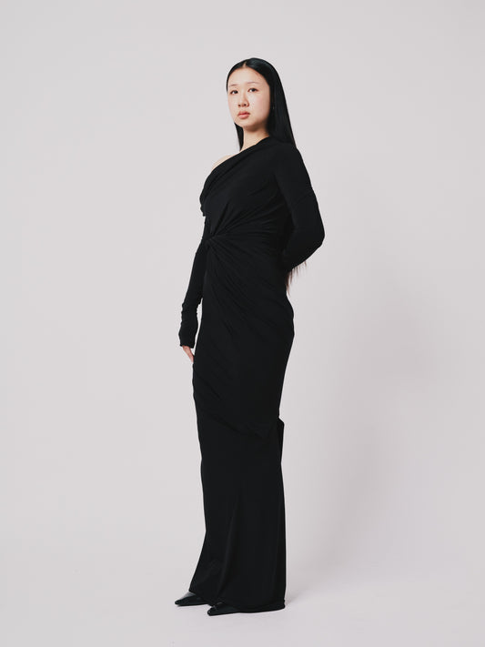 Off Shoulder - Twisted Drape dress /long sleeve Black | PRE-ORDER