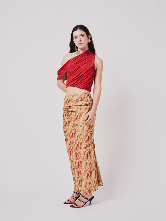 Structured Drape Skirt — Jacquard Flame Print (Silk Lined) | ONE-OFF