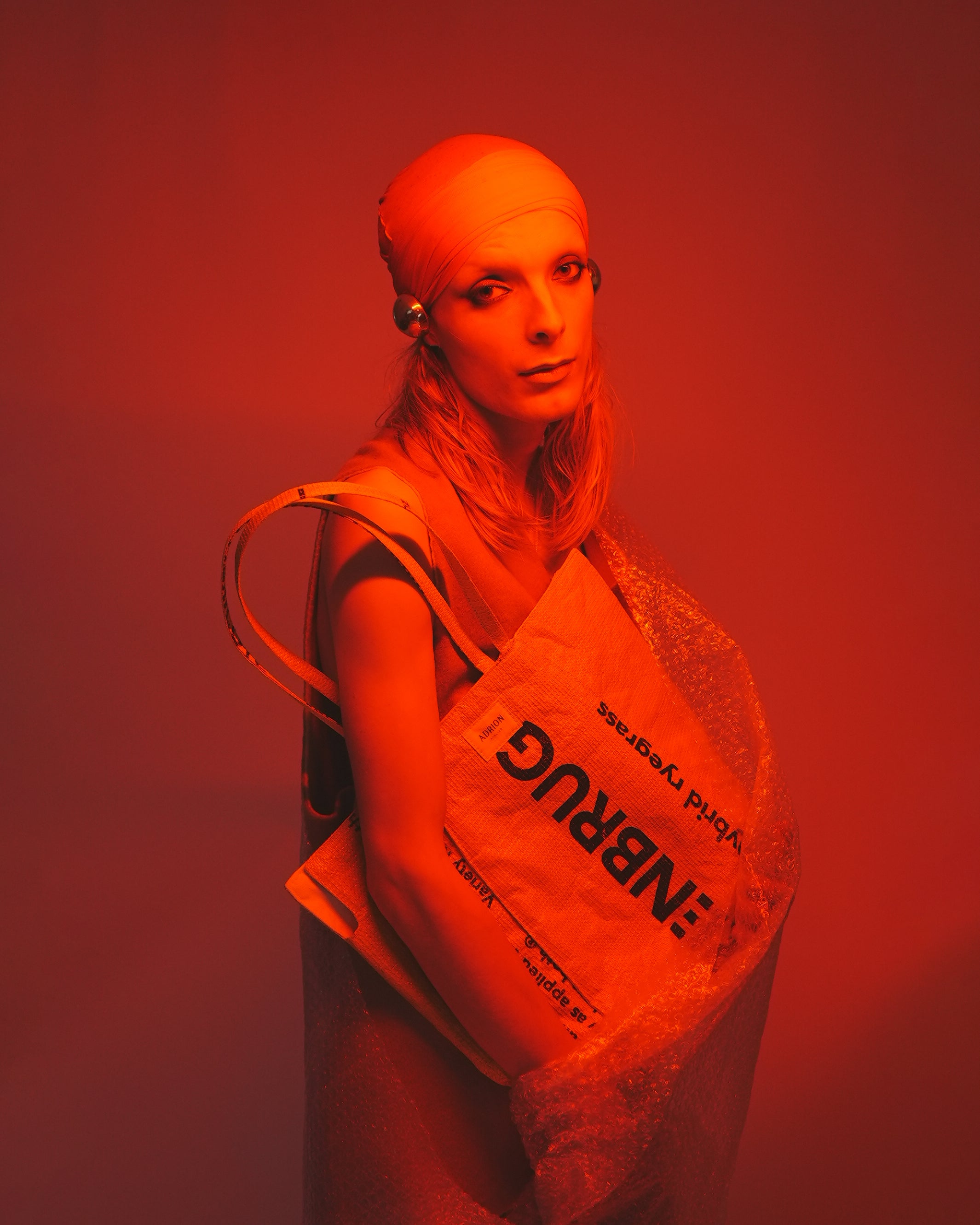 A unique collection of handbags crafted by repurposing diverse waste fabrics, offering an elegant carrying experience characterized by modern aesthetics and functional design. 'Waste reimagined and reused'.