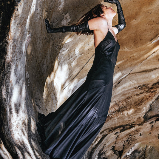 Ashleigh Slip Dress|Full Length - Liquid Black (One-Off)