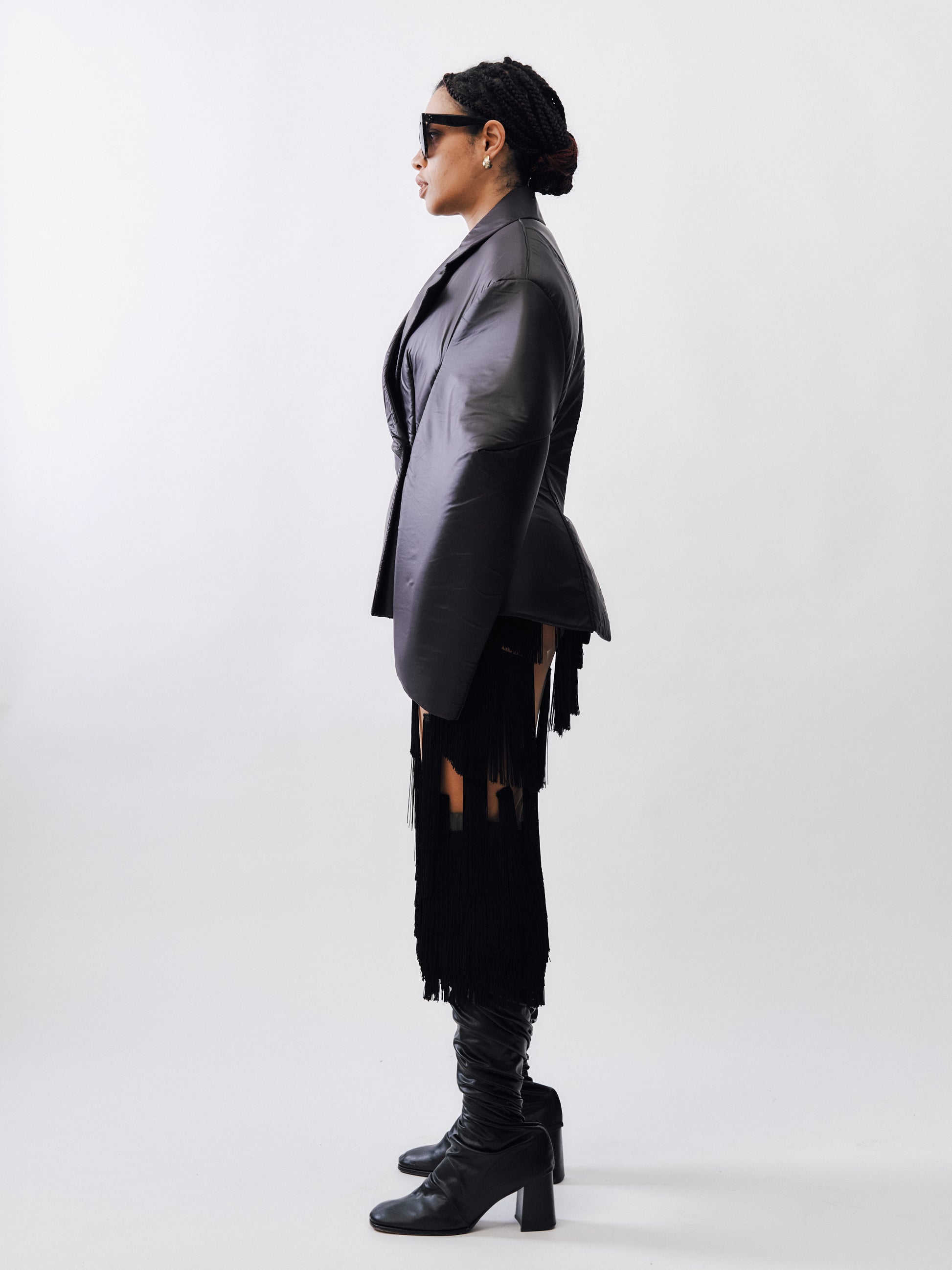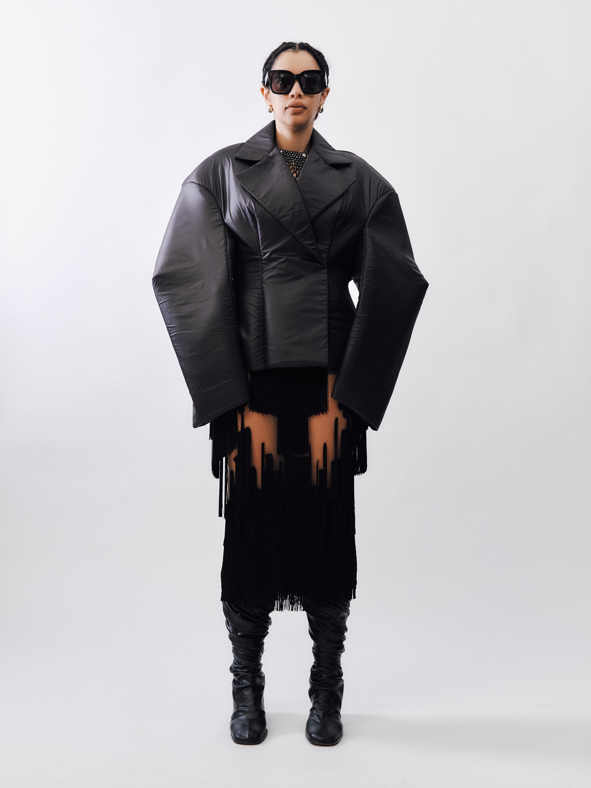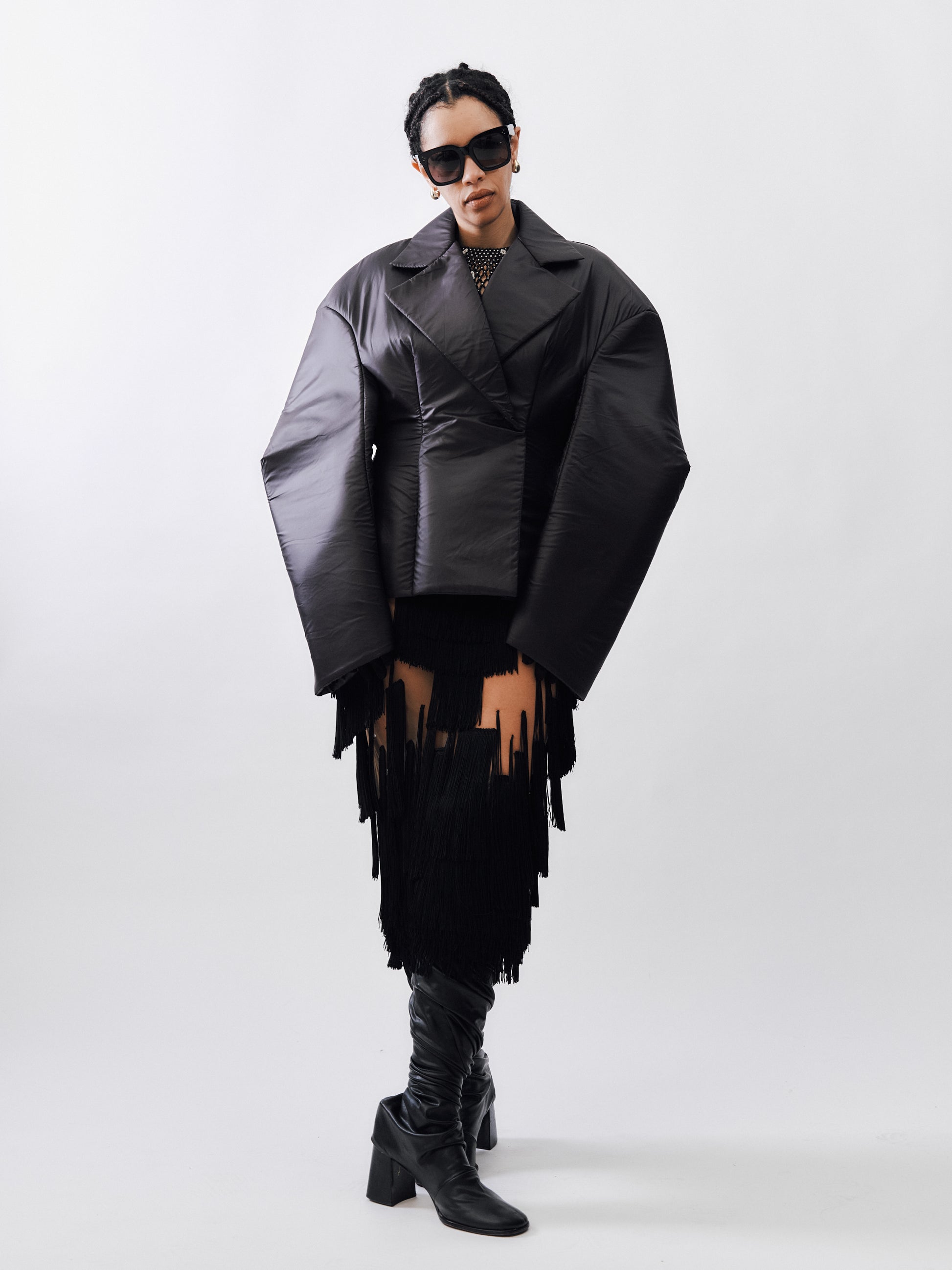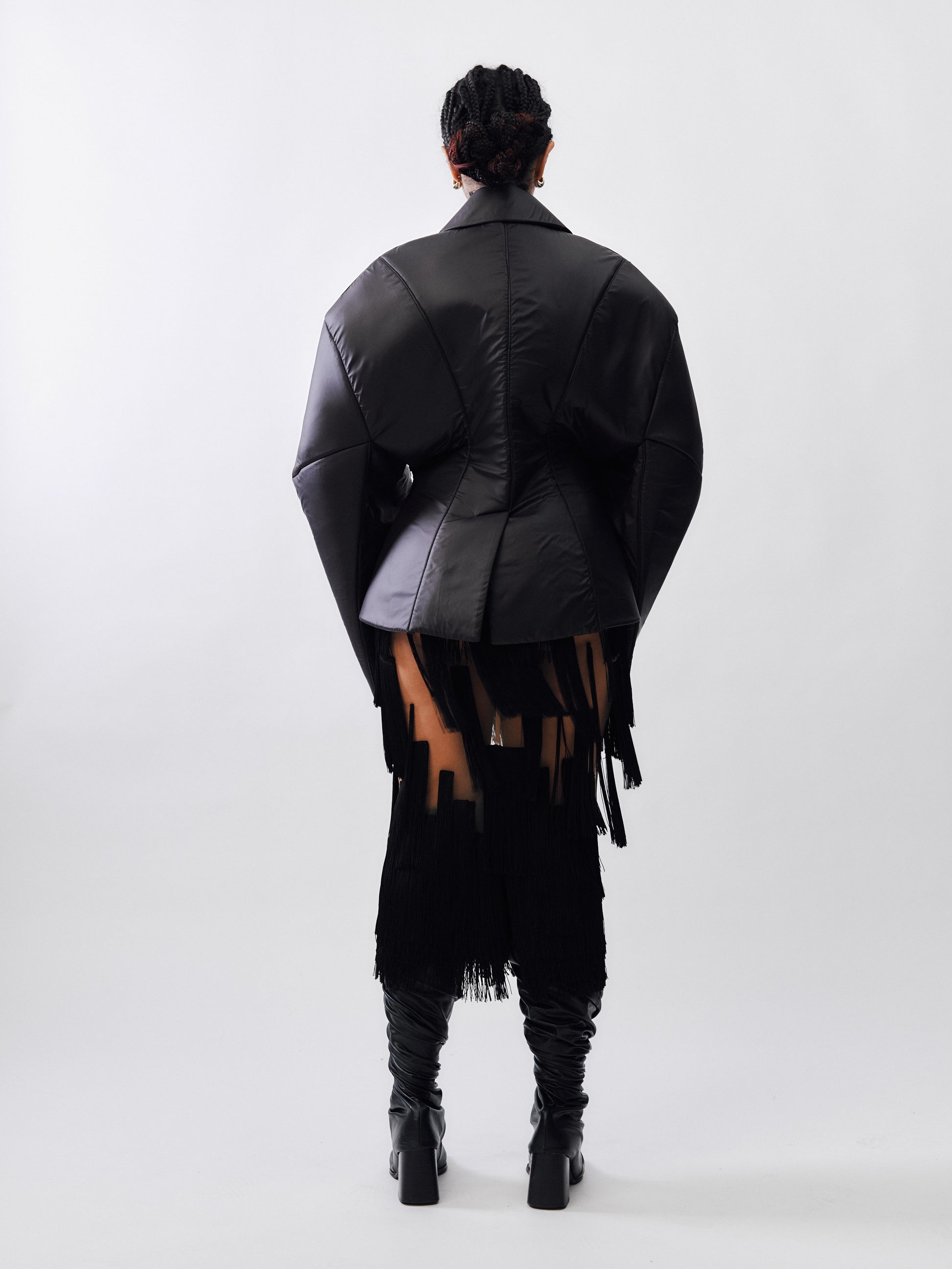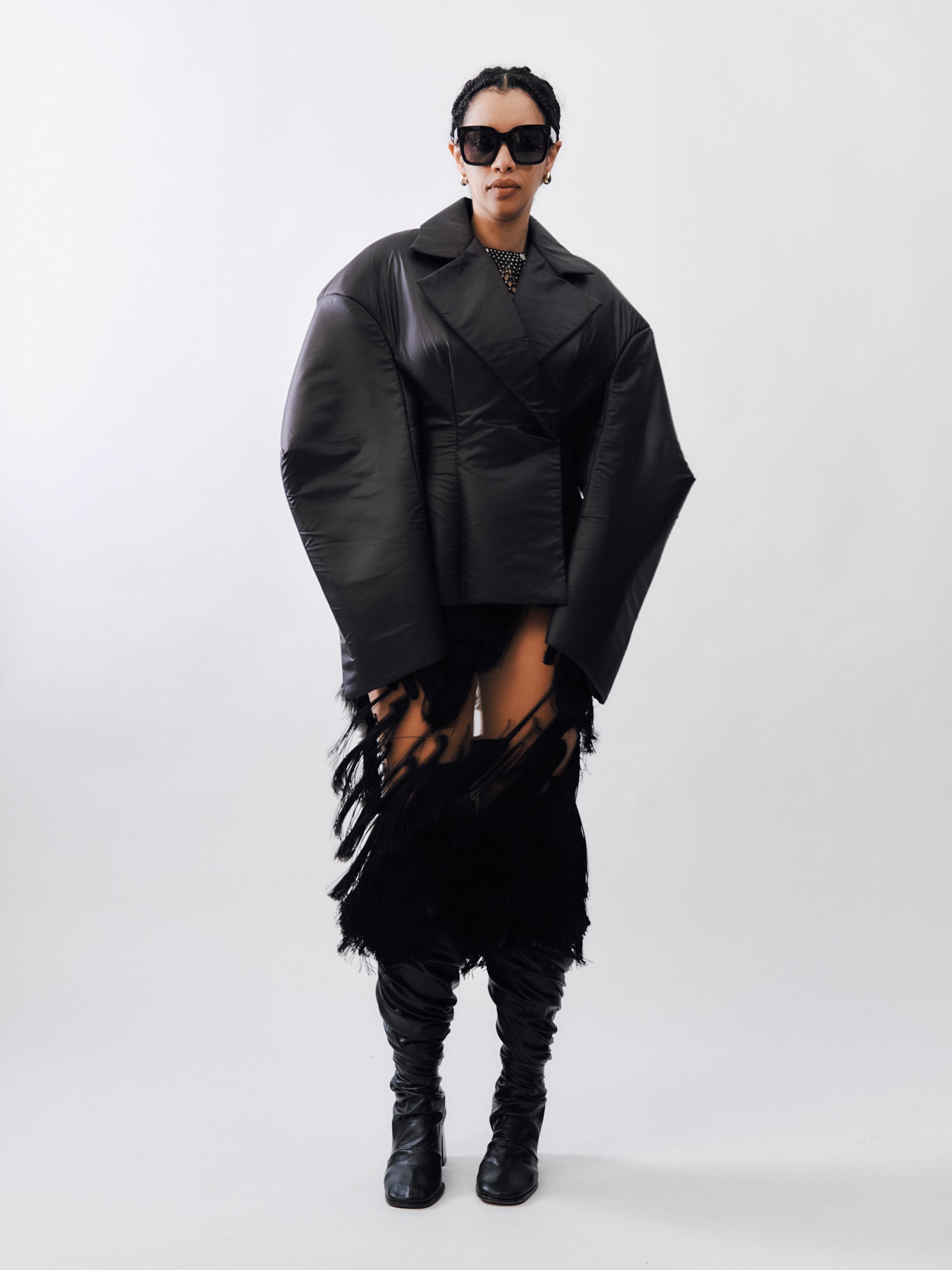 The Fitted Hybrid Puffer redefines winter outerwear with bold structure and refined tailoring. Lightweight yet sculptural, it’s designed to elevate colder days without compromising on warmth or style.